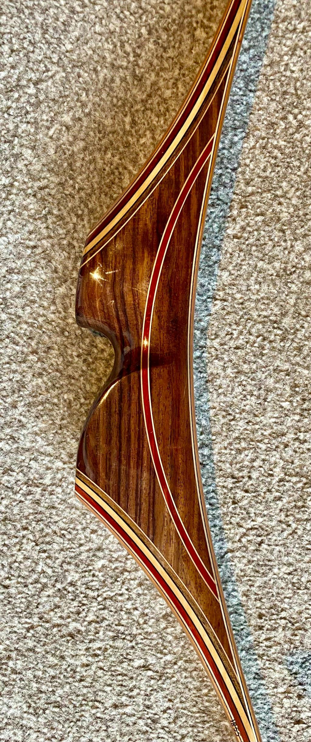 The bow handle is a composite constructed bow handles with plantations grown Rosewoods and hardwood laminations.